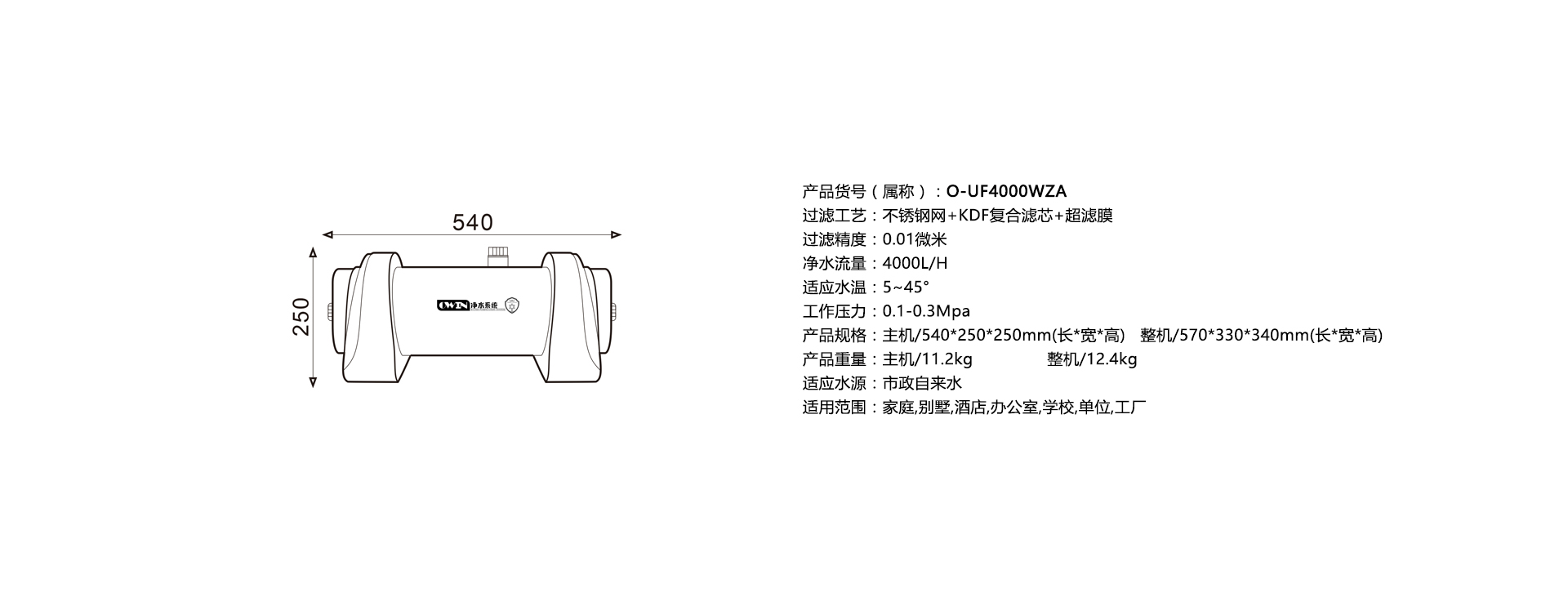 O-UF4000WZA中央净水机